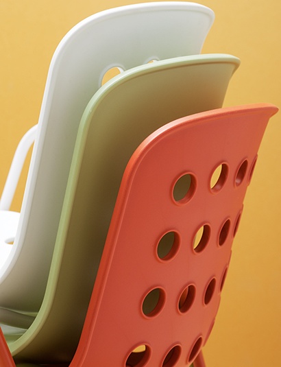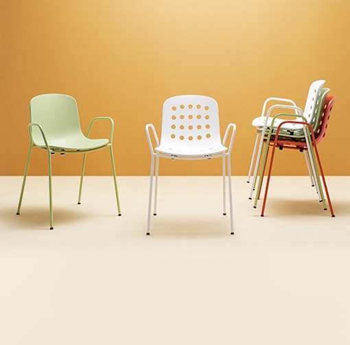 La chaise empilable Elias se distingue par son design rétro et par ses proportions fines. Elle est disponible en trois couleurs avec dossier fermé ou perforé. La structure de la chaise est en acier peint par poudrage et la coque confortable en polypropylène.